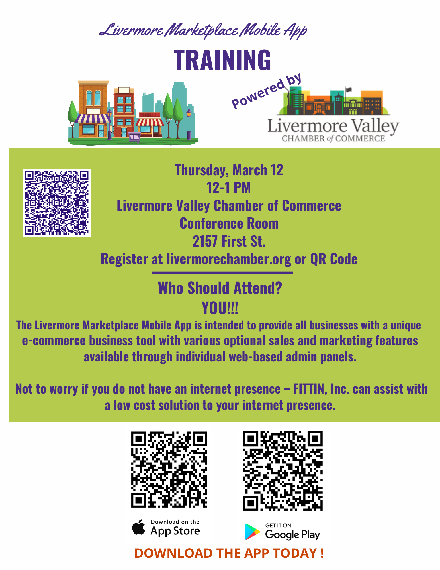 The Livermore Marketplace app is intended to provide all our members with a unique e-commerce business tool with various optional sales and marketing features available through individual web-based admin panels. Not to worry if you do not have an internet presence – FITTIN, Inc. can assist with a low cost solution to your internet presence.