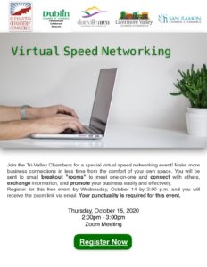 TriValleySpeedNetworking Christy Malsack2020-10-12T14:29:44-07:00October 12, 2020|0 Comments Share This Story! FacebookTwitterLinkedInEmail Leave A CommentComment For security, use of Google's reCAPTCHA service is required which is subject to the Google Privacy Policy and Terms of Use.I agree to these terms (required).